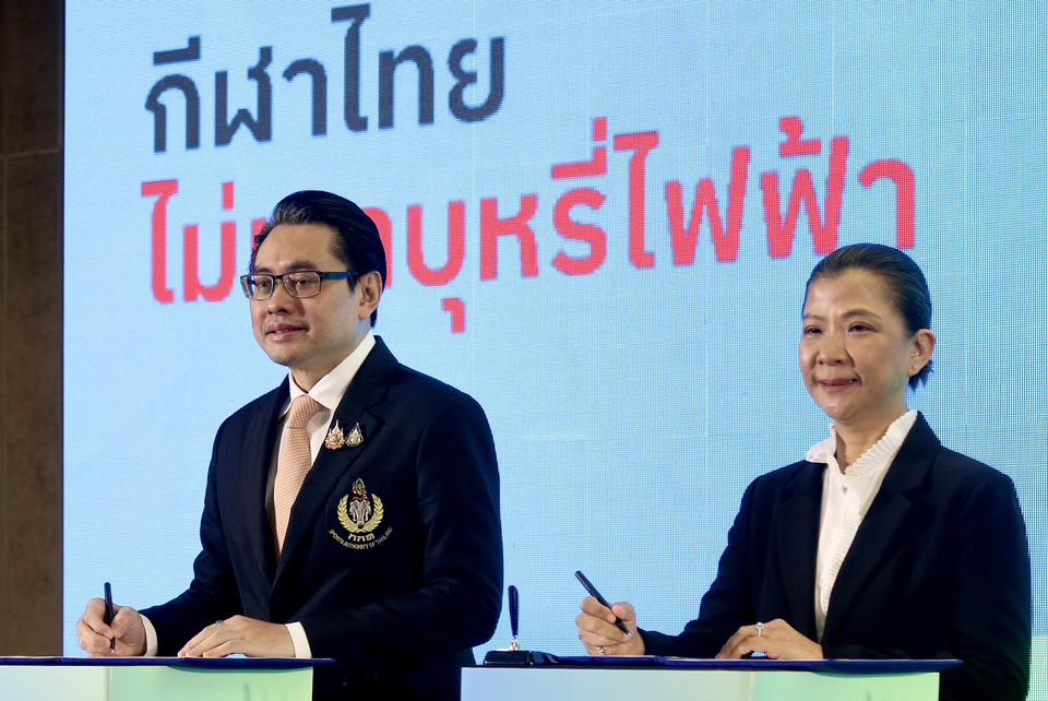 กกท. ร่วมลงนามบันทึกข้อตกลงความร่วมมือ (MOU) และประกาศเจตนารมณ์ “การกีฬาไทยไม่เอาบุหรี่ไฟฟ้า