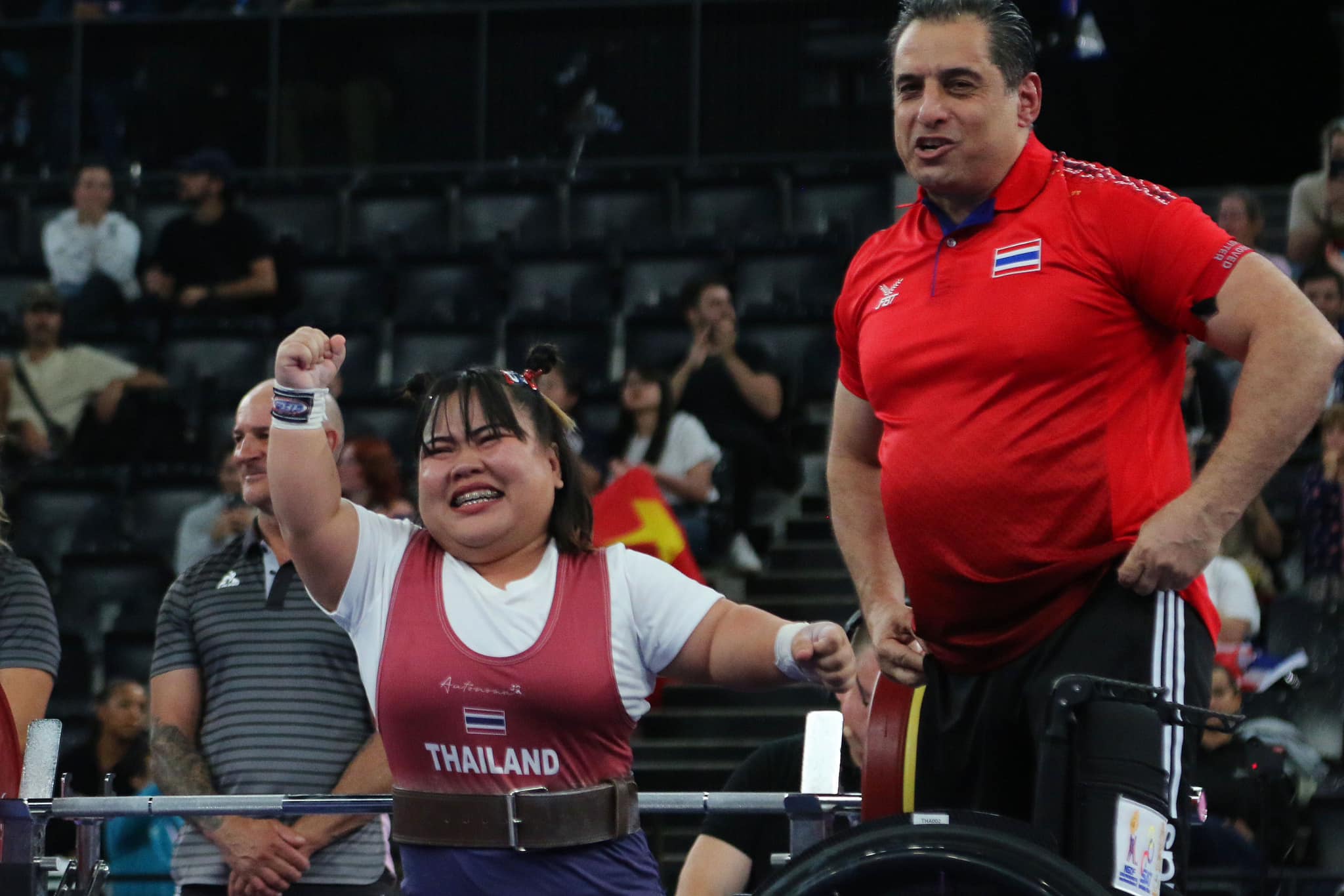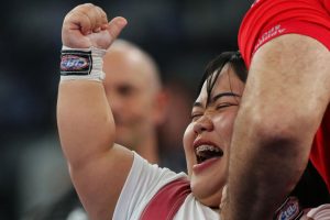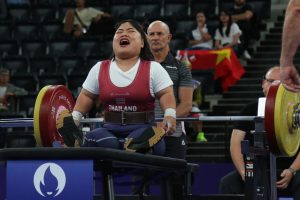กมลพรรณ กระราชเพชร นักยกน้ำหนักคนพิการสาวไทย ออกแรงยกเหล็กสุดกำลัง ก่อนคว้าเหรียญทองแดงมาครองด้วยสถิติ 108 กก. ในการแข่งขันยกน้ำหนักหญิง รุ่นน้ำหนัก 55 กก. หญิง กีฬาพาราลิมปิกเกมส์ ครั้งที่ 17 กรุงปารีส ประเทศฝรั่งเศส เมื่อวันพฤหัสบดีที่ 5 กันยายน ที่ผ่านมา