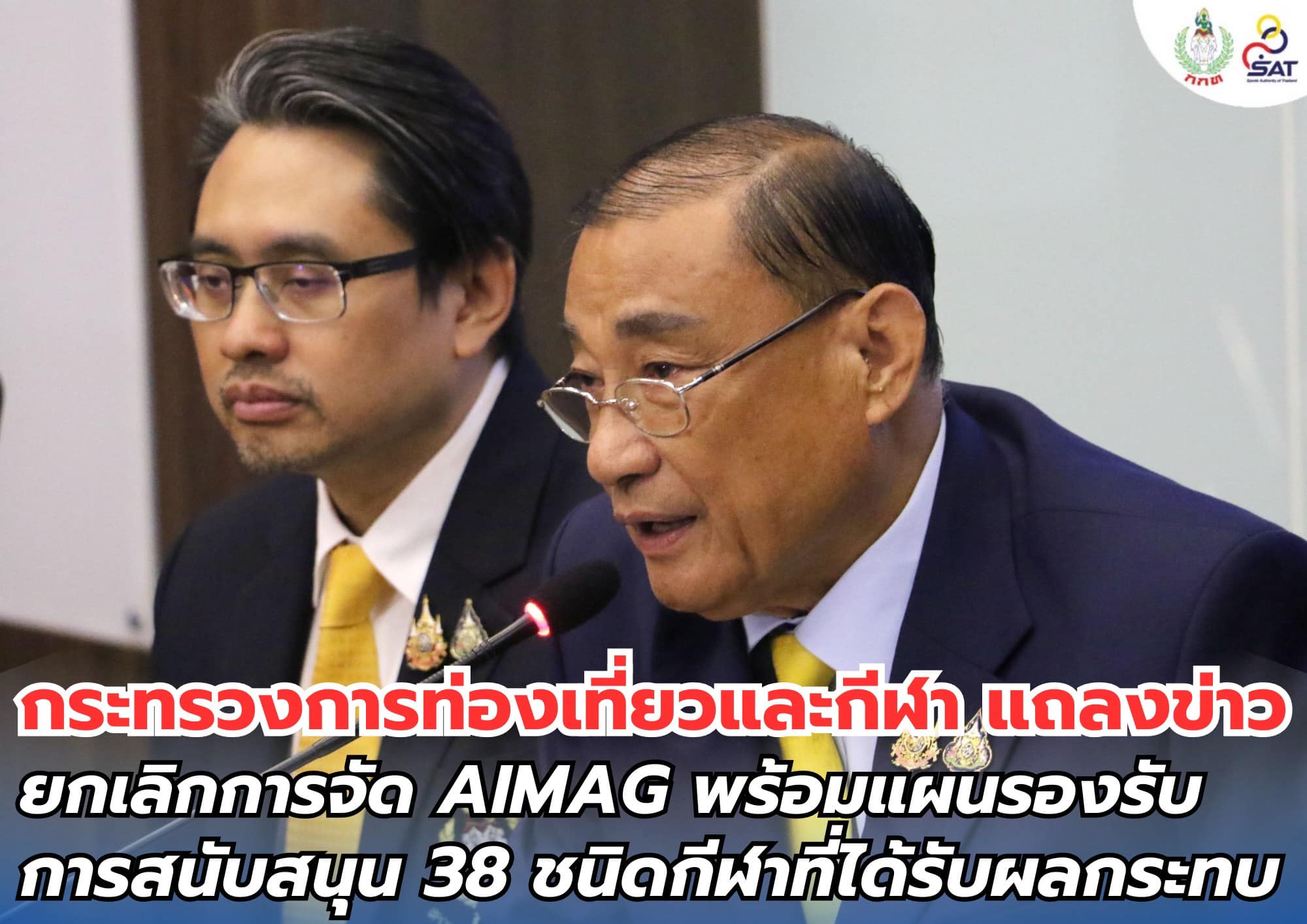 **กระทรวงการท่องเที่ยวและกีฬา แถลงข่าวยกเลิกการจัด AIMAG พร้อมแผนรองรับการสนับสนุน 38 ชนิดกีฬาที่ได้รับผลกระทบ**