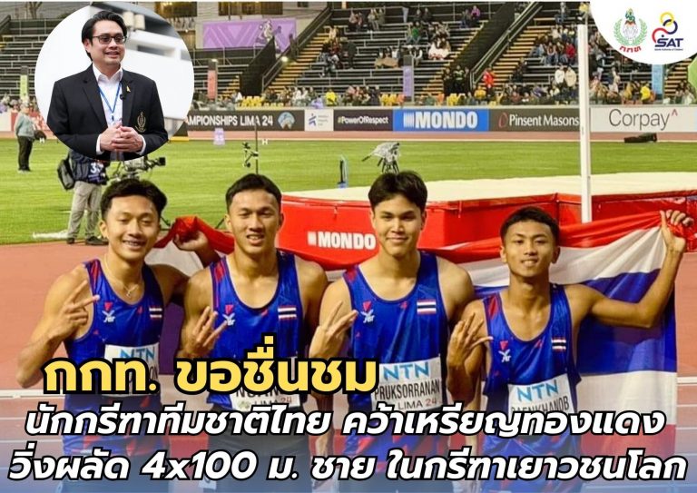 ข่าวประชาสัมพันธ์ กกท. ขอชื่นชม นักกรีฑาทีมชาติไทย คว้าเหรียญทองแดง วิ่งผลัด 4*100 ม. ในกรีฑาเยาวชนโลก3 September 20245 September 2024