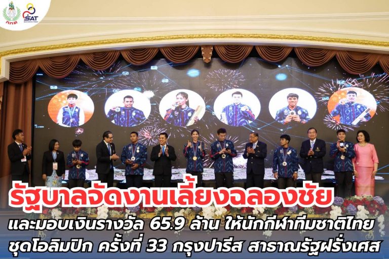 ข่าวประชาสัมพันธ์ รัฐบาลจัดงานเลี้ยงฉลองชัย และมอบเงินรางวัล 65.9 ล้าน ให้นักกีฬาทีมชาติไทย ชุดโอลิมปิก ครั้งที่ 33 กรุงปารีส สาธาณรัฐฝรั่งเศส16 August 202419 August 2024