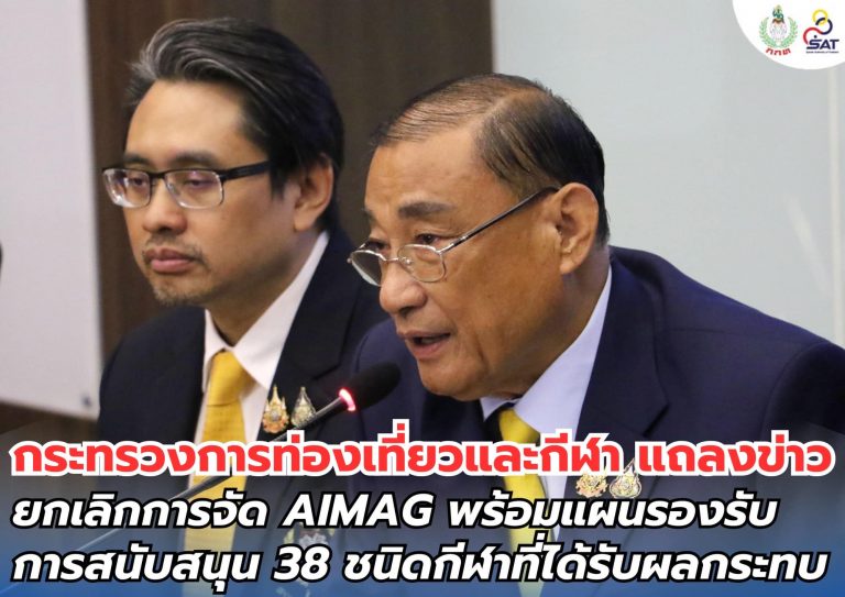 ข่าวประชาสัมพันธ์ **กระทรวงการท่องเที่ยวและกีฬา แถลงข่าวยกเลิกการจัด AIMAG พร้อมแผนรองรับการสนับสนุน 38 ชนิดกีฬาที่ได้รับผลกระทบ**21 August 202422 August 2024